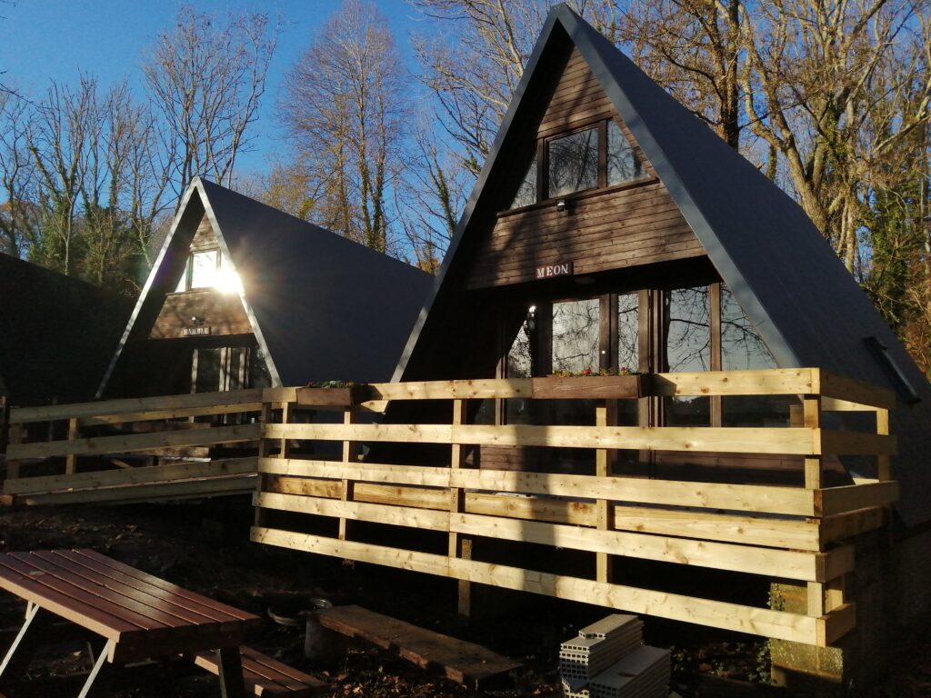 Blue Bubble was able to set up in the A frame cabins because we weren’t offering residential accommodation during 2020 or 2021. As such, the cabins were set up for small group holidays, not for day service use. We have been adapting the cabins for a little while, taking out dividing walls and some old bathrooms and kitchens, converting one cabin to a workshop and another to a group work space. This year we have started adapting another cabin for use as a training flat, fitting a kitchen and changing the layout. This will be used to promote independent living skills. Another cabin has been given over to use as a craft workshop. The fifth cabin has been adapted, ready for its new use as an IT suite.