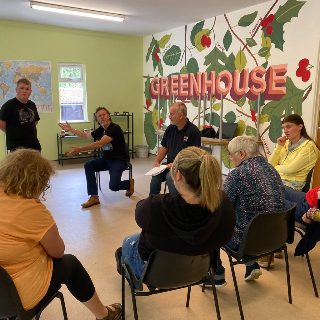 The range of activities undertaken by our day service users includes gardening, upcycling, woodwork, archery, gym, walking, painting, bushcraft, baling, maintenance, cleaning, ukulele, motorboat, shopping, firemaking, birdwatching, sensory room, litterpicking, travel training, football, fruit picking, cooking, baking, jam making, window cleaning, camera club and zipwire.