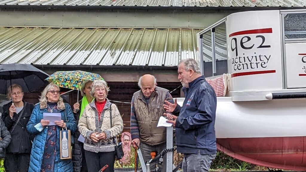 The naming ceremony for our new wheelchair accessible boat, the Peter Gardiner, went very well, despite the rain. This 7 metre pontoon boat, designed and built by CML at Marchwood, Southampton, was launched in September 2021. The naming ceremony took place in February 2022, on the first anniversary of the death of its namesake, Peter Gardiner. Peter was the son of Chris and Phyllis Gardiner, the founders of the Centre, and in many ways was the inspiration for the QE2 Activity Centre.